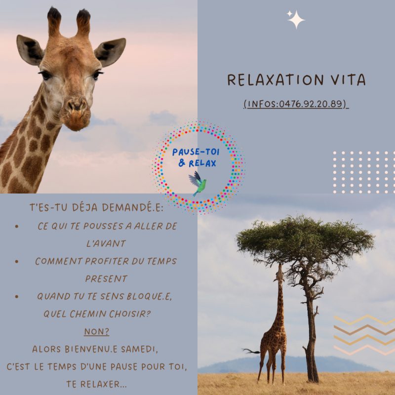 Chaque séance comprend des exercices qui allient relaxation et développement de soi et ce, à l’aide d’un animal de pouvoir et des 4 éléments (eau, terre, air et feu). Vous serez également bercé par des sons de la Nature, de la musique et une histoire magique permettant de vous reconnecter à votre enfant intérieur dans un moment de pure détente et de calme.